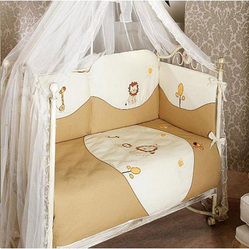 Комплект Feretti   Diamond Lion 6 предметов  выполнено по современным технологиям с использованием натуральных материалов, что характеризует качество продукции Feretti. Бактериостатическое постельное белье предотвращает развитие бактерий, иначе говоря, создает для ребенка гигиеничный климат. Постельные сеты создадут уют малышу и подарят ему спокойные и приятные сны. Наполнитель одеяла и подушки "Ингео" растительного происхождения, произведен из зерен кукурузы. Антиаллергенен. Хорошо удерживает тепло и выводит водяной пар. Наполнитель характеризуется мягкостью и пушистостью. Долго сохраняет первоначальные характеристики. Наполнитель бампера: синтепон. Ткань с бампера можно снимать и стирать.